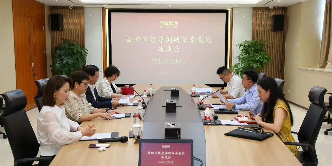 6月21日上午,盐田区副区长李强强率队走访调研百泰集团,百泰集团创始人周桃林携集团管理层热情接待,双方就企业生产经营情况和发展规划等议题开展座谈交流。盐田区统计局统计调查中心副主任袁湉、区工业和信息化局工业科相关负责人参加调研。