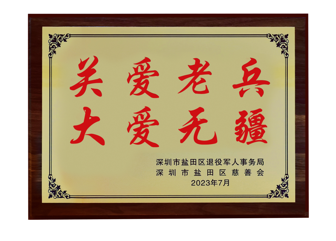 百泰集团荣获盐田区“关爱老兵 大爱无疆”奖牌