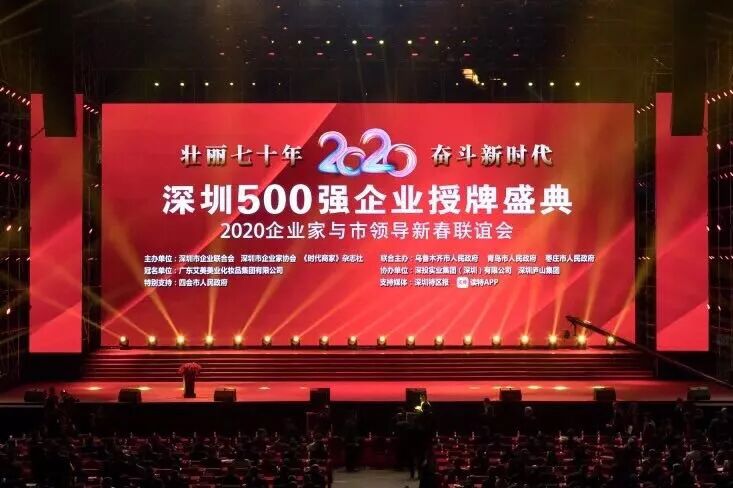 12月10日,由深圳市企业联合会、深圳市企业家协会和和时代商家杂志社主办的“深圳500强企业授牌盛典暨2020企业家与市领导新春联谊会”在深圳湾体育中心隆重举行。深圳市人大常委会主任骆文智,市政协主席戴北方,市委常委、统战部部长林洁,副市长王立新等市领导与企业家们欢聚一堂,共话发展。