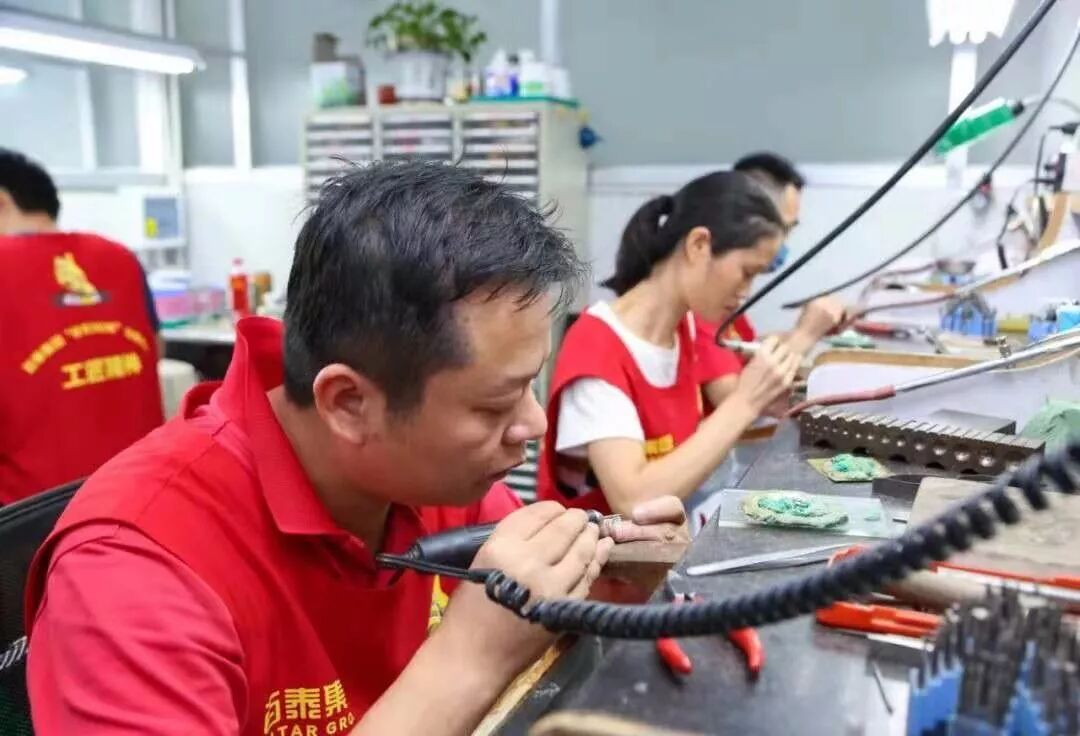 作为黄金珠宝首饰制造领域的领军企业,百泰始终秉承“人才决定企业前途,技术决定企业兴衰”的人才培养宗旨,积极践行工匠精神,完善人才培育体系,通过举办360工匠比武大赛、邀请国家工美大师传经送宝、建立高技能人才培训基地和大师工作室等一系列行之有效的举措,挖掘与培养了一大批国家、省、市、区政府认定的高技能人才,为珠宝市场输出了众多独具特色的高品质产品。